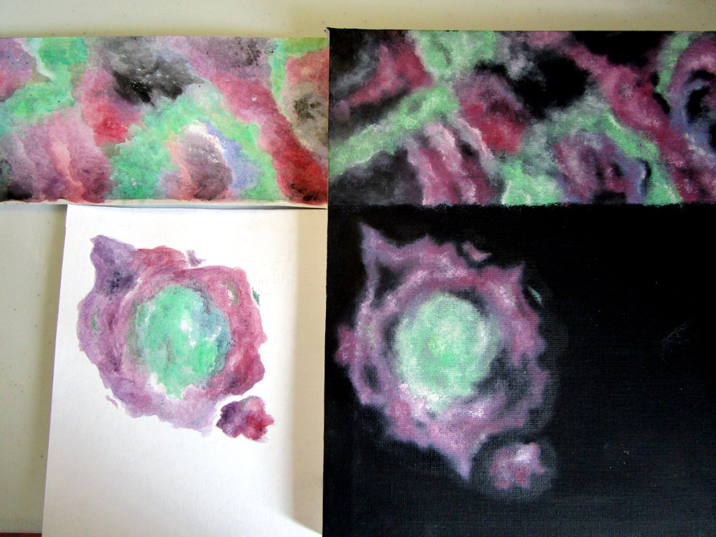 En plus de toutes mes révisions, je tiens aussi à dessiner et peindre toutes sortes de choses: les couvertures de mes livres (ben oui, car mon histoire n’entrera pas dans un seul livre, alors il va falloir qu’elle soit publiée en trois parties, mautadit!), mes signets, une carte améliorée de l’île de Sechora, et des portraits de mes personnages, qui vont se retrouver sur des chandails et autres articles offerts dans ma boutique.