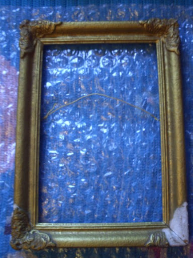 Un couple d’amis de mes parents m’a confié ce vieux cadre, qui contenait une photo en noir et blanc colorée à la main, pour que je le répare, si possible. J’ai déjà restauré de vieux personnages de crèche en plâtre, j’ai aimé l’expérience, et le résultat était satisfaisant. Quand j’échappe malencontreusement un bol ou un vase, j’ai tendance à vouloir recoller les morceaux. J’ai déjà réparé des bibelots cassés, et même une grosse chandelle de Bouddha que ma mère avait acheté en rabais parce qu’elle était décapitée. Je suppose que c’est cette brève expérience qui a amené ma mère a leur proposer de m’apporter le cadre pour voir ce que je pourrais en faire.