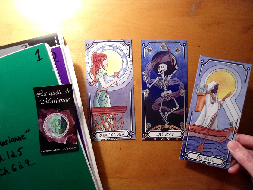 Ok, mais là je m’égare… Quel genre de roman c’est, La quête de Marianne? Je ne sais pas, et c’est toujours une question qui me rend mal à l’aise parce que je ne suis pas certaine de ce que je devrais répondre… C’est un peu un roman fantastique. Un peu un roman d’aventures. C’est un peu un livre de développement personnel…? Non, pas vraiment.