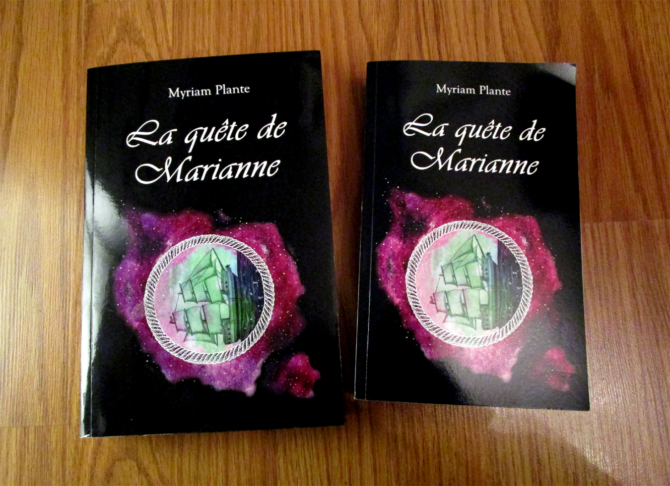 Pourquoi le deuxième exemplaire est plus petit que le premier? Cette version-là est en vente sur Amazon… et hélas pour moi, sa mise en page intérieure est bien meilleure que celle de l’autre version, dont j’avais commandé une centaine d’exemplaires. Donc, à mon avis, le livre est plus beau si vous le commandez sur Amazon.