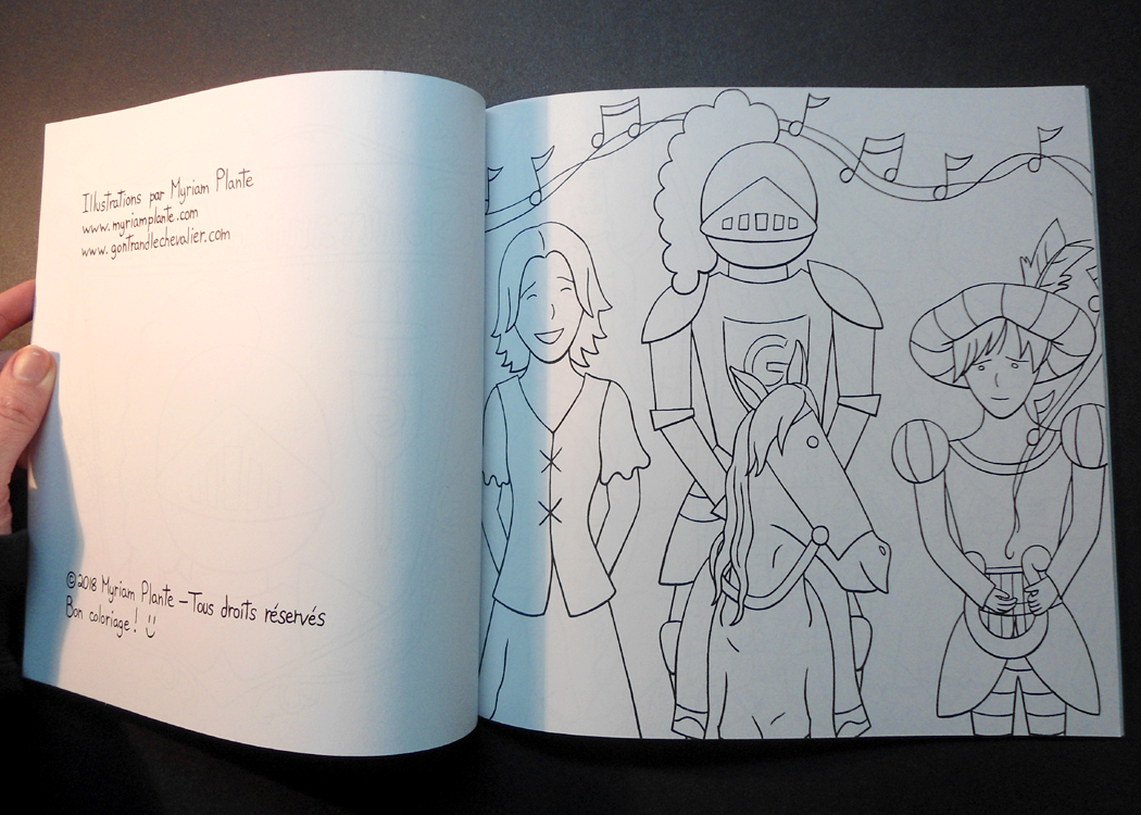 Eh oui! Si tu aimes colorier, j’ai créé un livre à colorier de Gontrand le Chevalier pour toi. Ses dessins mettent en vedette les personnages de ma BD dans des situations originales et amusantes.