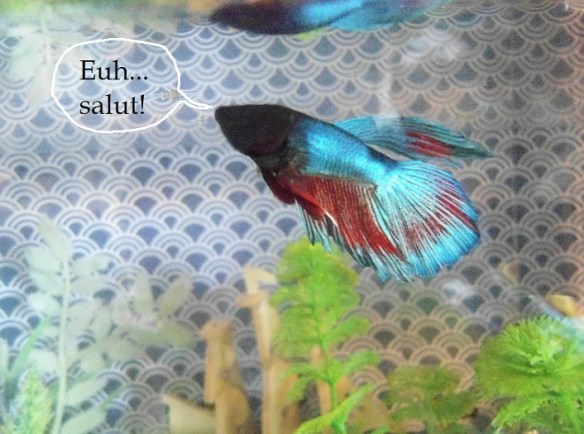 Voici mon nouveau colocataire, Gwynplaine le betta! (J’aime donner des noms de personnages de Victor Hugo à mes poissons…)