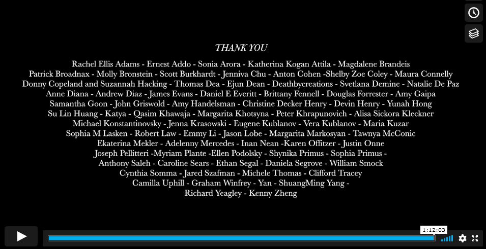 Voici le message qui apparaît à la fin du film! Mon nom est dans cette liste de remerciements, et sera à jamais associé à The White Goddess.