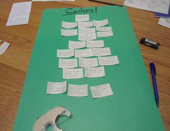 J’ai écrit sur des petits bouts de papier tous les évènement importants de la suite de mon histoire, et je les ai placés dans l’ordre. C’est ce tableau fabuleux qui devrait m’aider à écrire plus rapidement…