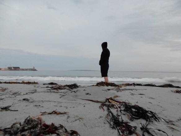 Une photo de moi sur la plage de Hunts Point, prise par mon père. Ça fait bizarre de penser qu’il faisait assez froid pour que je porte un gros hoodie avec un capuchon, mais que j’étais quand même en shorts! En comparaison, je n’ai presque jamais porté de shorts cet été…