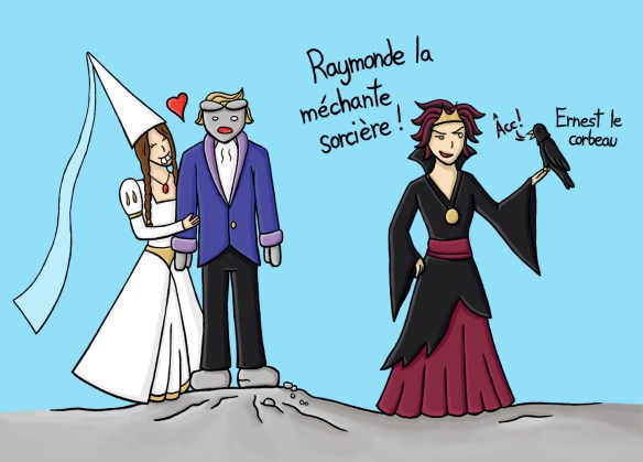 Comme la majorité des personnages de ma bande dessinée, elle n’est pas très intelligente. C’est ce qui fait son charme, je suppose! Dans l’histoire, elle se fait enlever par une méchante sorcière appelée Raymonde, et elle est entraînée dans diverses péripéties. Mais, parce qu’elle est un peu nounoune, elle ne se rend jamais vraiment compte qu’elle pourrait être en danger ou qu’elle se trouve dans une situation anormale.
