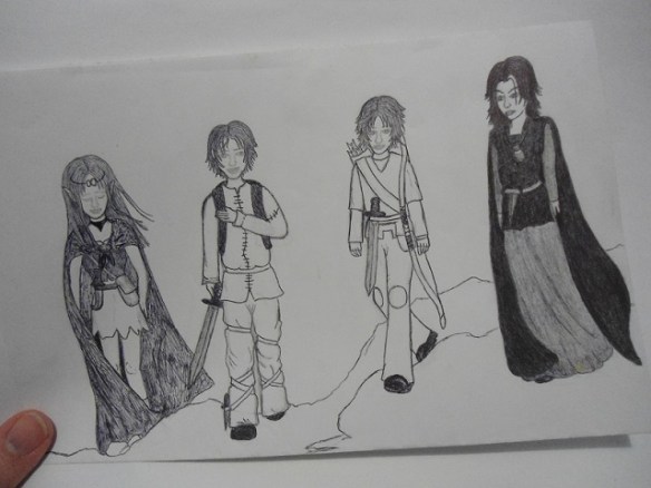Voici un dessin plus récent, dans un style différent! Dans l’ordre: Ève, Nycolah, Leïya, et Damien.